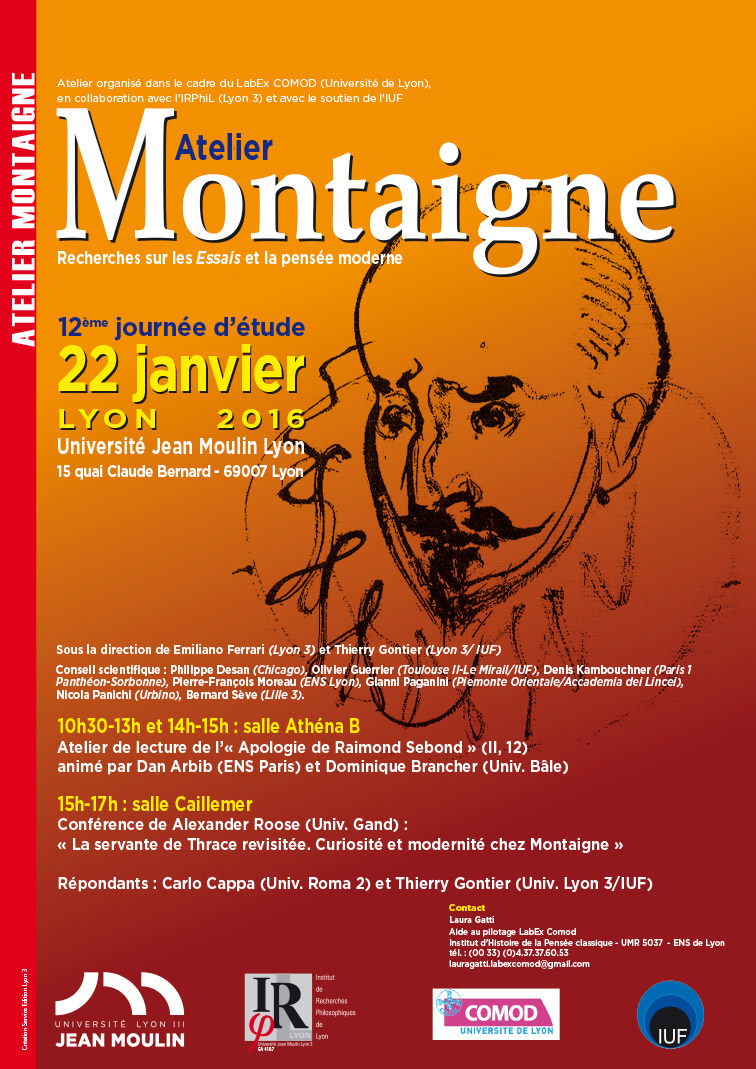 Conférence de Alexander Roose (Univ. Gand) : « La servante de Thrace revisitée. Curiosité et modernité chez Montaigne»Répondants : Carlo Cappa (Univ. Roma 2) et Thierry Gontier (Univ. Lyon 3/IUF)